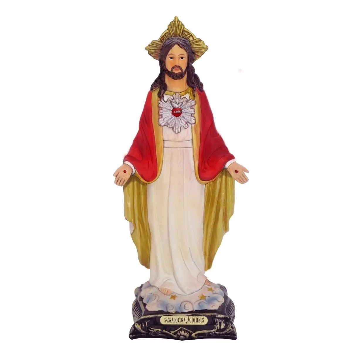 A imagem do Sagrado Coração de Jesus é confeccionada em resina, possui 20 cm de altura e é toda pintada artesanalmente à mão. Desenvolvida para você, devoto do Sagrado Coração de Jesus, fazer uma experiência de oração e expressar sua fé.