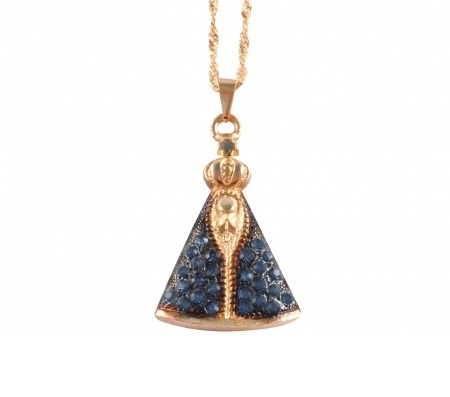 Pingente Folhado a Ouro N. Sra. Aparecida com Manto Azul